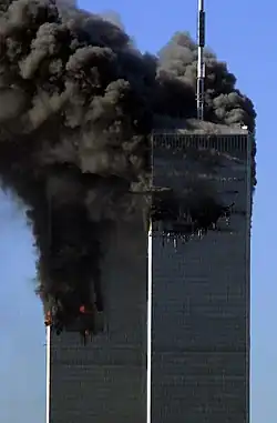 Zamachy z 11 września 2001 roku, często potocznie określane jako 11 września – seria czterech skoordynowanych ataków terrorystycznych, przeprowadzonych przez paramilitarną islamską organizację terrorystyczną Al-Ka’ida[1] przeciwko USA rano we wtorek 11 września 2001 roku na terytorium Stanów Zjednoczonych za pomocą uprowadzonych samolotów pasażerskich. Sprawcami byli przedstawiciele organizacji Al-Ka’ida, którzy po opanowaniu samolotów skierowali je na obiekty dwóch wież World Trade Center oraz budynku Pentagonu. W każdej z grup napastników w każdym z samolotów był jeden, który był przeszkolony w pilotowaniu maszyn powietrznych. Celem zamachowców było skierowanie samolotów na budynki będące symbolem Stanów Zjednoczonych i ich potęgi oraz spowodowanie przez to masowych strat w ludziach i całkowitej lub częściowej destrukcji budynków. Dwie z uprowadzonych maszyn uderzyły w bliźniacze wieże World Trade Center, a trzecia uderzyła w zachodnie skrzydło Pentagonu. W przypadku czwartego samolotu atak nie powiódł się z uwagi na obronne zachowanie pasażerów na jego pokładzie, wskutek czego maszyna rozbiła się na polu w Pensylwanii[2].