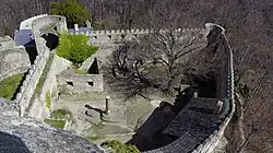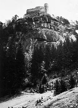 31 sierpnia 1675 r. podczas burzy w zamek trafił piorun[3]. Wybuchł pożar, w którym ucierpiał zamek górny i zwieńczenie wieży[3]. Po pożarze budowla popadła w ruinę, której już nigdy nie odbudowano[3]. W XIX wieku zamek stał się atrakcją turystyczną odwiedzaną przez kuracjuszy z Cieplic[3]. W 1822 r. zorganizowano pod zamkiem punkt wynajmu przewodników i tragarzy. W ruinach zamku otwarto gospodę, w której prowadzono księgi pamiątkowe[3]. W 1823 roku wybudowano schody na wieżę[3]. W 1860 r. adaptowano północną basteję na schronisko turystyczne[1].