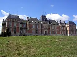 Wzniesiony w XVII wieku zamek reprezentuje styl Ludwika XIII, znany m.in. z paryskiego Place des Vosges. Charakterystycznymi jego elementami jest elewacja złożona z czerwonej cegły i białego kamienia oraz wysoki dach. Bryła zamku składa się z korpusu głównego oraz dwóch pawilonów bocznych. Dodatkowo, w skład zabudowań wchodzą stajnie, szklarnie oraz budynki gospodarcze[1].