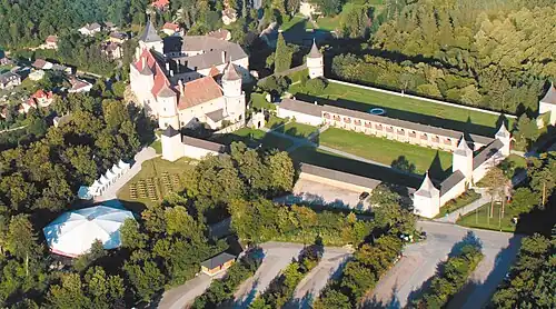 Pod koniec XVI, wieku zamkowi nadano charakter pałacu renesansowego. Dodano 13 wież, 46 arkad oraz w roku 1614 wybudowano plac do turniejów rycerskich, który jest uważany dzisiaj za największy nadal wykorzystywany tego typu plac rycerski.