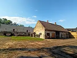 Obszar rezydencji sąsiaduje z zabudowaniami dawnego folwarku. W przeszłości cały kompleks z rezydencją i parkiem stanowił funkcjonalną całość. Stadnina Koni Prudnik prowadziła w budynkach folwarku hodowlę krów, którą przeniesiono do nowych obór w Wierzbcu. W styczniu 2025 SK Prudnik postanowiła wystawić teren dawnego folwarku, na który składają się cztery działki z sześcioma budynkami gospodarczymi, na sprzedaż[29].