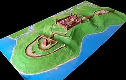 Wielkość osady, rodzaj umocnień nie są wiarygodnie określone ze względu na brak szeroko zakrojonych badań archeologicznych. W wykopaliskach o powierzchni 300 m² znaleziono szczątki trzech mieszkańców XII i XIII wieku, ceramikę, przedmioty metalowe, broń i ozdoby. Przylądek podzielony jest na części trzema głębokimi rowami, których czas kopania nie jest znany.