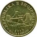 Albańskie 10 leków (rewers) z wizerunkiem zamku Berat