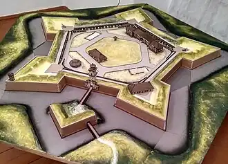 Brama cytadeli znajdowała się od strony miasta i wiódł do niej zwodzony most i grobla, osłonięte dodatkowo rawelinem wysuniętym przed kurtynę murów. Bastiony o prostych barkach rozwiązano podobnie jak w pałacu Koniecpolskich w Podhorcach. Kazamaty od strony dziedzińca ozdobione były kamiennym detalem, swoją architekturą nawiązują do wzorów włoskich. Pomieszczenia w kazamatach ze sklepieniami krzyżowymi połączone były amfiladowo, w bastionach znalazły się sześcioboczne sale o sklepieniach palmowych opartych na środkowym słupie. W kazamatach znajdowały się kwatery wojska, magazyny i pomieszczenia gospodarcze, dowódca twierdzy mieszkał w drewnianym budynku na dziedzińcu.