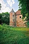 Zamek powstał na planie prostokąta, dwukondygnacyjne skrzydła otaczają wewnętrzny dziedziniec, do którego prowadzi sień przejazdowa pod prostokątna basztą w skrzydle zachodnim. Pozostałe trzy koliste baszty umieszczono na narożach. Najstarszą częścią są piwnice w północno-zachodnim skrzydle. Pierwotnie był otoczony fosą z wodą. Wnętrza jedno i dwutraktowe przesklepione na parterze sklepieniem kolebkowym z lunetkami. Zachował się także odkryty w 1905 malowany strop z 1583 przedstawiający herby rodowe, renesansowe i barokowe portale na przykład od strony południowej z herbem von Saurma[1]; renesansowe kamienne obramienia okien, oraz fragmenty dekoracji stiukowej. W murach zamku gościło wielu wspaniałych gości. Tu w 1611 Leonhard von Kottwitz urządził wesele Johannowi Heermannowi, jednemu z najwybitniejszych twórców ewangelickich.