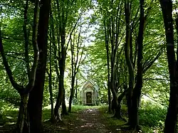 W pobliżu zamku, na końcu grabowej alejki wybudowano kaplicę grobową (ok. 1900 r.).