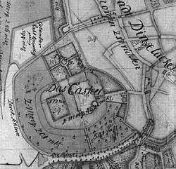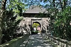 ![]() Zamek w Dinslaken od strony południowo-zachodniej z bramą główną (2018) | |