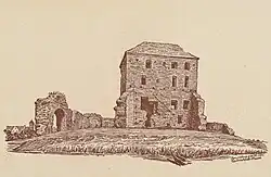 W połowie XV wieku ostatni przedstawiciele rodu Pałuków Michał Gołaniecki i Andrzej Gołaniecki wybudowali mur obwodowy od strony północnej, bramę i narożną wieżę cylindryczną (Basztkę) o wysokości prawie 7 metrów, średnicy nieco ponad 5 metrów, która służyła w dolnej części za więzienie[1].