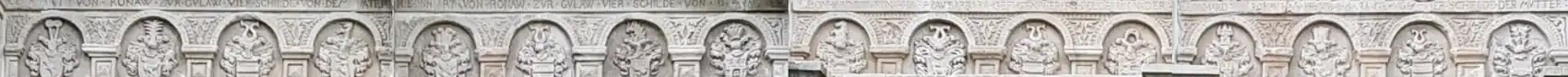 - górny rząd, od lewej, von: 1. Rohnau 2. Nassau 3. Reibnitz 4. Nimptsch 5. Senitz auf Rudelsdorf 6. Reibnitz, 7. Pfeil 8. Pogrell.