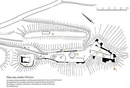 - ↑ Melsztyn. W ruinach zamku odkryli schody ze średniowiecza [online], plus.gazetakrakowska.pl, 7 sierpnia 2017 [dostęp 2019-12-18] (pol.).