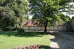 Oficynę wzniesiono prostopadle do rezydencji. Wykonana w konstrukcji szkieletowej na planie prostokąta. Dach dwuspadowy, nakryty dachówką. Wnętrze oficyny jest także dwutraktowe.