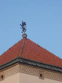 Drugi z najstarszych budynków, wieża bramna, zbudowana jest na rzucie zbliżonym do kwadratu, podparta narożnymi szkarpami. W przyziemiu znajduje się gotyckie sklepienie krzyżowe z ostrołukowymi otworami wjazdowymi. Na piętrze znajduje się późnorenesansowa kaplica, zajmująca dawne dwie kondygnacje. Od wschodu, zachodu oraz południa na poziomie pierwszego piętra znajdują się okna z kamiennymi obramieniami o bogatych profilach i krzyżykowych podziałach, natomiast na poziomie drugiego piętra znajdują się okrągłe okna. Przy zwieńczeniu gzymsu znajdują się okrągłe otwory strzelnicze. Wieża zwieńczona jest kulą, na której usytuowany jest miedziany gryf.