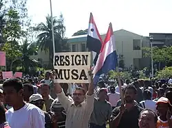 14 stycznia 2005 rząd Saida Musy ogłosił budżet na rok 2005–2006[2]. Budżet określał między innymi duży wzrost różnego rodzaju podatków, w tym jedenastoprocentową podwyżkę podatku od nieruchomości, pięcioprocentową podwyżkę podatku od instytucji finansowych, ośmioprocentową podatku od papierosów i stuprocentową podatku od rumu. Choć według rządu podatki te są porównywalne do tych z 1998 pod rządami Zjednoczonej Partii Demokratycznej, spowodowały one, w połączeniu z częstymi zarzutami o korupcję, protesty pod budynkiem Zgromadzenia Narodowego, które zaczęły się 15 stycznia. Demonstracje oraz walki z policją trwały przez następny tydzień.
