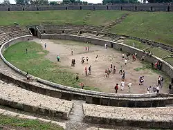 - ↑ Archeological Object: Riot between Pompeians and Nucerians. cir.campania.beniculturali.it. [dostęp 2015-10-16]. (ang.).