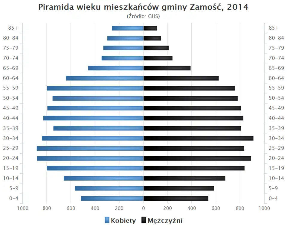 - Piramida wieku mieszkańców gminy Zamość w 2014 roku[1].