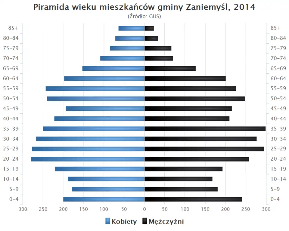 - Piramida wieku mieszkańców gminy Zaniemyśl w 2014 roku[1].