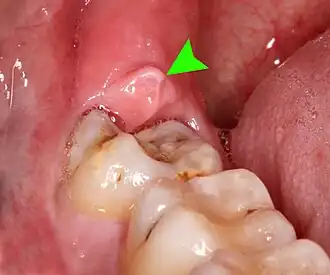 - ropień okołokoronowy (ang. pericoronal abscess)