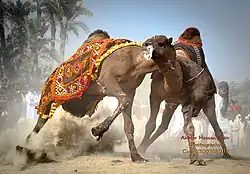 Zapasy wielbłądów mają charakter festiwali, rozpoczynają je parady zwierząt udekorowanych kilimami i makatami, organizowane są też konkursy piękności. W Arabii Saudyjskiej obok zapasów przeprowadza się również wyścigi wielbłądów. Sport nie budzi takich kontrowersji jak hiszpańska korrida jednak bywa krytykowany przez organizacje broniące praw zwierząt.