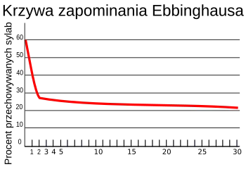 Pierwszym badaczem, który zajmował się zapominaniem i zapamiętywaniem w sposób systematyczny był Hermann von Ebbinghaus. Badał on zapamiętywanie materiału bezsensownego. Wyniki swoich badań przedstawił w postaci krzywej Ebbinghausa (lub „krzywej zapominania”). Pokazuje ona ostry spadek ilości przypominanych informacji zaraz po zakończeniu procesu uczenia się oraz stopniowe, łagodne zapominanie reszty materiału wraz z upływem czasu (więcej na temat natury przeprowadzonych eksperymentów i ich ograniczeń zobacz Hermann von Ebbinghaus, krzywa zapominania).