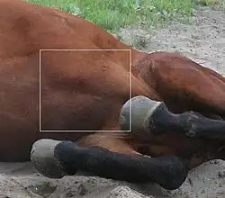 Do objawów zapoprężenia należą: obrzęk, sztywność i bolesność mięśni piersiowych konia w okolicy mocowania popręgu.