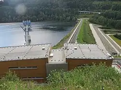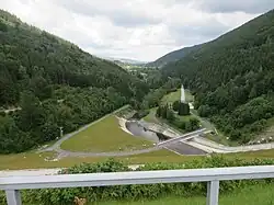 Zapora ciężka, ziemna, ze spadzistym rdzeniem z gliny i z warstwą filtru piaskowego, z obustronnym nasypem kamiennym. Fundament zapory uszczelniony jest jednorzędową przegrodą iniekcyjną do głębokości 70 m[4]. Zapora ma 65 m wysokości i 342 m długości w koronie[5] - w momencie budowy była największym tego typu obiektem w kraju. Jej objętość wynosi 1 340 000 m³. Korona zapory znajduje się na wysokości 508,1 m n.p.m. Konstrukcja urządzeń upustowych zapewnia gwarantowany przepływ poniżej zapory na poziomie 2,3 m³/s[4].