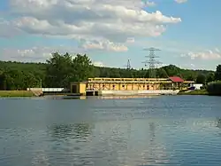Jaz piętrzy wody Brdy do wysokości 8 m. Woda przepływa przez dwie turbiny Kaplana o łącznej mocy 4 MW[3].