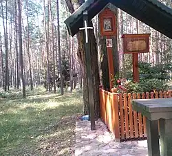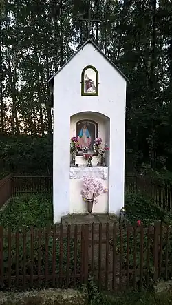 - krzyż przydrożny wraz z kapliczką Św. Huberta, na pamiątkę wyrośnięcia siedmiu odnów dębu z jednego pnia (do dziś zachowało się określenie kapliczka przy siedmiu dębach).[3][4][5][6]
