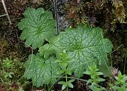 - Wyrastają na długich ogonkach w różyczce i podobnie jak łodyga są miękko owłosione. Mają okrągławy kształt z głębokosercowatą nasadą i są klapowane mniej więcej do ¼ długości, przy czym łatki z każdej strony mają 2–3 ząbki z krótką ością[14][13].