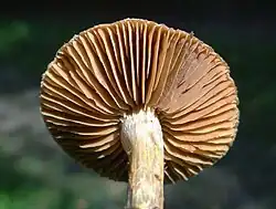 Szeroko przyrośnięte, szerokie, grube, u młodych owocników jasnopomarańczowobrązowe, u starszych ciemnopomarańczowobrązowe. Ostrza białawe[4].