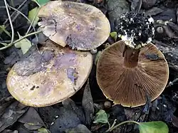 NaOH przebarwia skórkę kapelusza i miąższ na czerwonobrązowo, płyn Lugola na rdzawobrązowo[5].