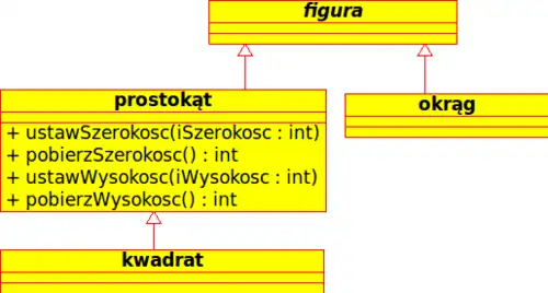 Funkcja przetwarzajFigurę() wprowadza dodatkowe zależności w kodzie, ponieważ musi ona znać wszystkie klasy dziedziczące po klasie Figura. Oznacza to, że każde utworzenie nowej klasy dziedziczącej po klasie Figura, będzie prawdopodobnie wiązało się ze zmianą tej funkcji.