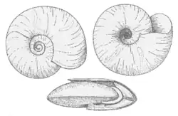Po spodniej stronie muszli wyraźnie widoczny, miseczkowaty dołek osiowy.