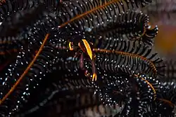 ![]() Lybia tessellata wśród koralowców sfotografowana na terenie Zatoki Kimbe | |