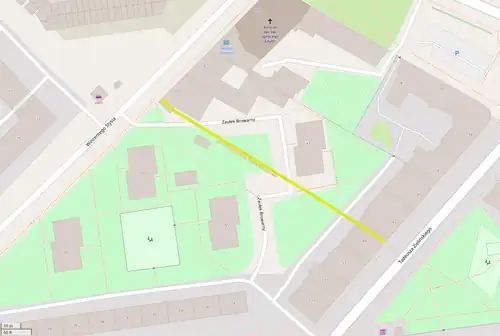 Usytuowanie dawnej bramy wjazdowej do Zaułka Browarnego z ul. Stysia 20