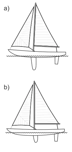 - Wybranie żagli przednich i wyluzowanie żagli tylnych.