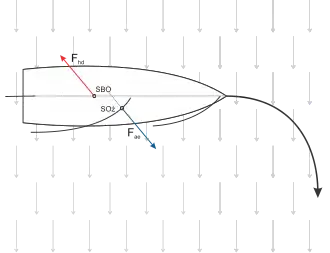 Równowaga kursowa jachtu zależy od wzajemnego położenia środka ożaglowania (SOż) oraz środka bocznego oporu SBO. W ogólności zawietrzność występuje, gdy SOż przesunięty jest w kierunku dziobu względem SBO. Powstaje wtedy moment powodujący odpadanie jachtu.