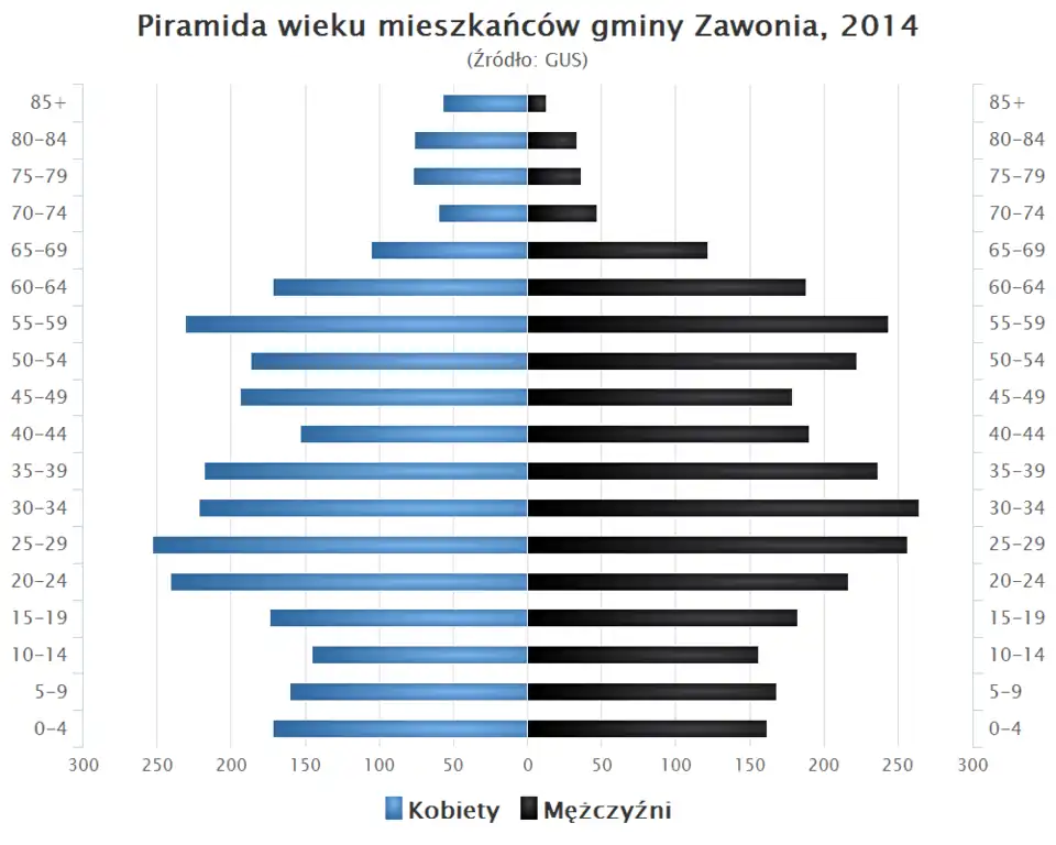 - Piramida wieku mieszkańców gminy Zawonia w 2014 roku[5].