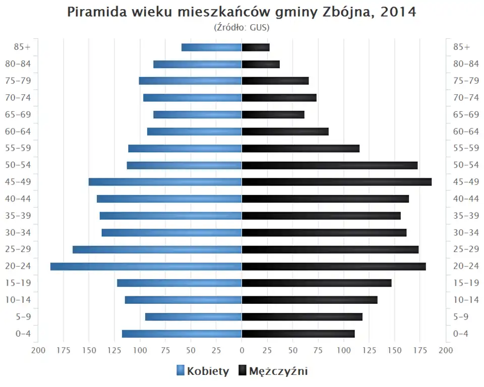 - Piramida wieku mieszkańców gminy Zbójna w 2014 roku[1].