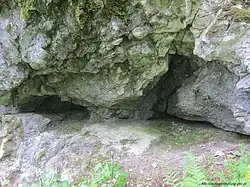 Pod dużym okapem (6 metrów długości) znajdują się dwie wnęki, z których prawa jest szersza i głębsza[1].