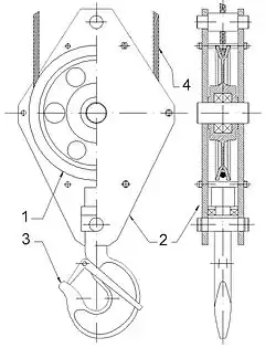 Zblocze złożone jest z krążka linowego, jarzma i ułożyskowanego haka, który może być jednorożny, dwurożny lub czterorożny. Całość zawieszona jest na linie nośnej.