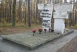 - Kwatera Siedmiu Grobów – siedem mogił z krzyżami i piaskowcową tablicą pamiątkową o treści: Miejsce uświęcone męczeńską krwią Polaków pomordowanych przez hitlerowców w latach okupacji 1939–1945
