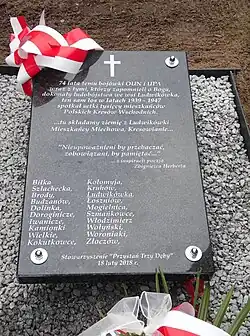 ![]() Tablica Pomnika ofiar zbrodni dokonanej na obywatelach polskich przez OUN-UPA wymieniająca Ludwikówkę | |