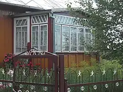 Do najbardziej dekoracyjnych części domu należały ganki. Najpierw miały one proste słupki, zwykle oszalowane do połowy wysokości, na których wspierał się dwuspadowy daszek. W miarę rozwoju zdobnictwa zwiększano liczbę elementów dekoracyjnych ganku. W następnym etapie ganki zaczęto zabudowywać oszklonymi ściankami. Oszklone ganki nazywano werandami. Dla wzmocnienia efektu używano czasem szybek w różnych kolorach[12]. Weranda zawierała zwykle od 100 do 160 szybek[13]. Najbardziej skomplikowane pod względem architektonicznym werandy przekraczały nawet 300 szybek i miały podobną liczbę drewnianych komponentów[a]. Zarówno werandy jak i otwarte ganki zdobiły dom[14]. Werandy rzadko służyły celom użytkowym, częściej służyły jako przestrzeń reprezentacyjna, w której znajdowały się przystrojone meble, donice z kwiatami, wiązanki święconego ziela, zabawki i różne elementy, które w danym czasie uchodziły za modne w danej wsi (np. przywożone zza wschodniej granicy samowary). Ważnym elementem wyposażenia były firany, dające półcień we wnętrzu, chroniły przed muchami, a ponadto pełniły również rolę zdobniczą[15]. Przeszklone werandy pojawiły się w latach 30 XX wieku. Rozpowszechniły się we wczesnych latach powojennych, przede wszystkim w większych wioskach leżących przy szerokich drogach (Ryboły, Dubiny, Klejniki)[16].