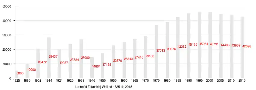 Największą populację Zduńska Wola odnotowała 30 czerwca 1996 - 46 021 mieszkańców.[13]