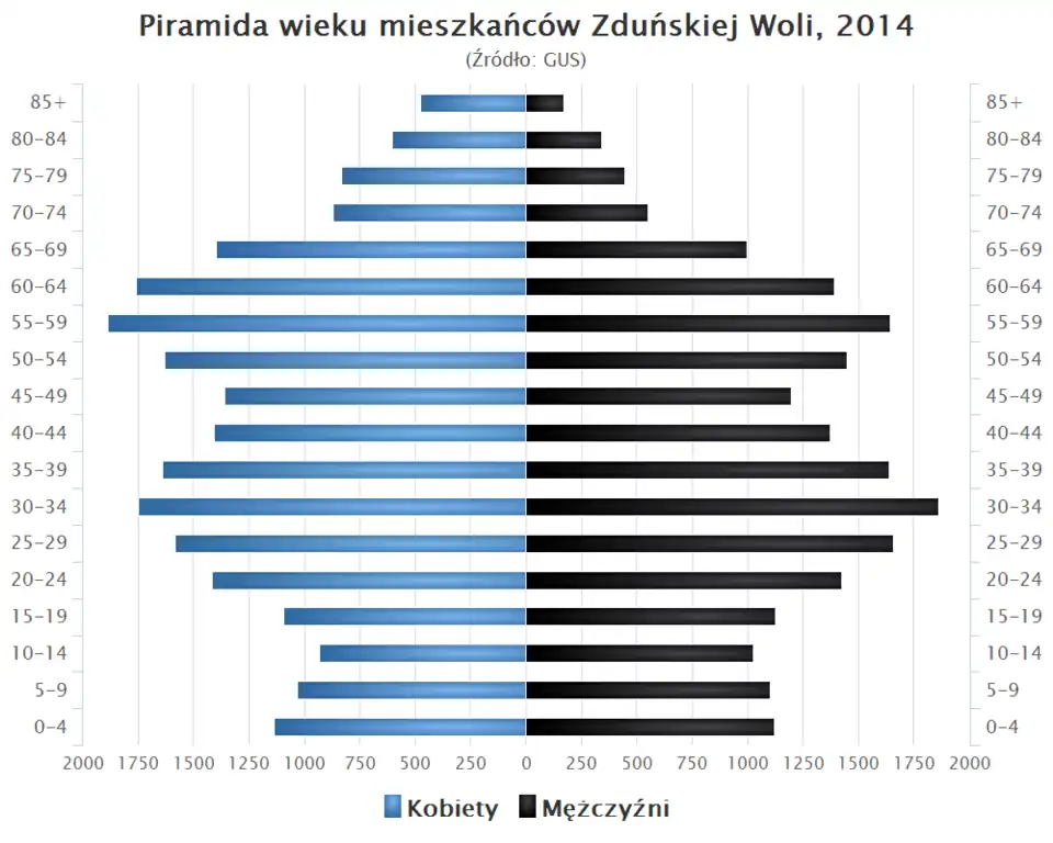 - Piramida wieku mieszkańców Zduńskiej Woli w 2014[12].