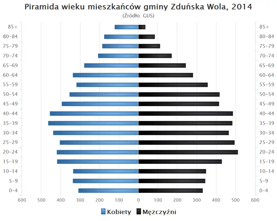 - Piramida wieku mieszkańców gminy Zduńska Wola w 2014 roku[1].