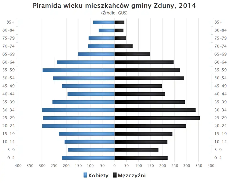 - Piramida wieku mieszkańców gminy Zduny w 2014 roku[1].