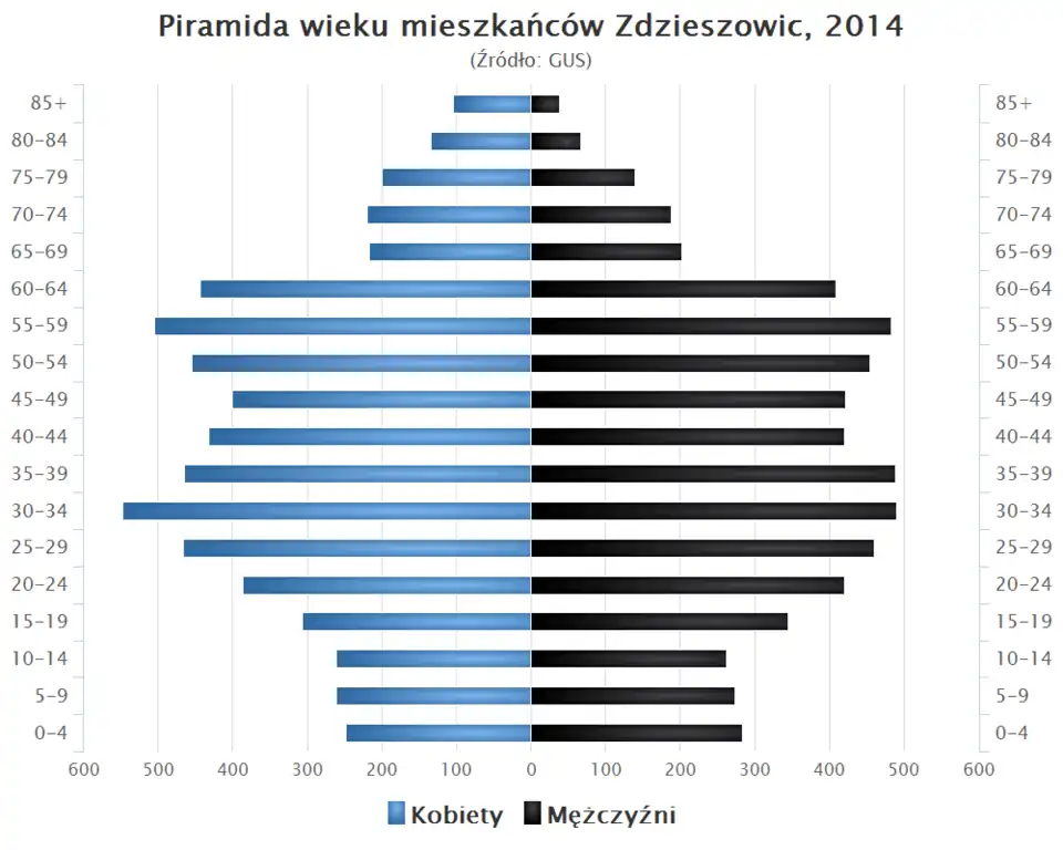 - Piramida wieku mieszkańców Zdzieszowic w 2014 roku[16].
