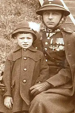 - ↑ Na podstawie fotografii Plik:Mjr. Zdzisław Sieczkowski z synem Jeremim Michałem.jpg