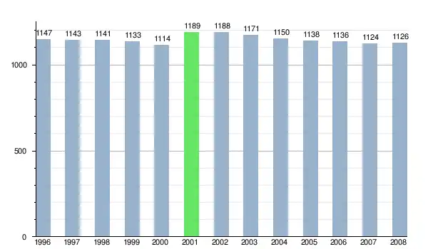 Według danych z dnia 31 grudnia 2012 roku, wieś zamieszkiwało 1147 osób, w tym 618 kobiet i 529 mężczyzn[6].